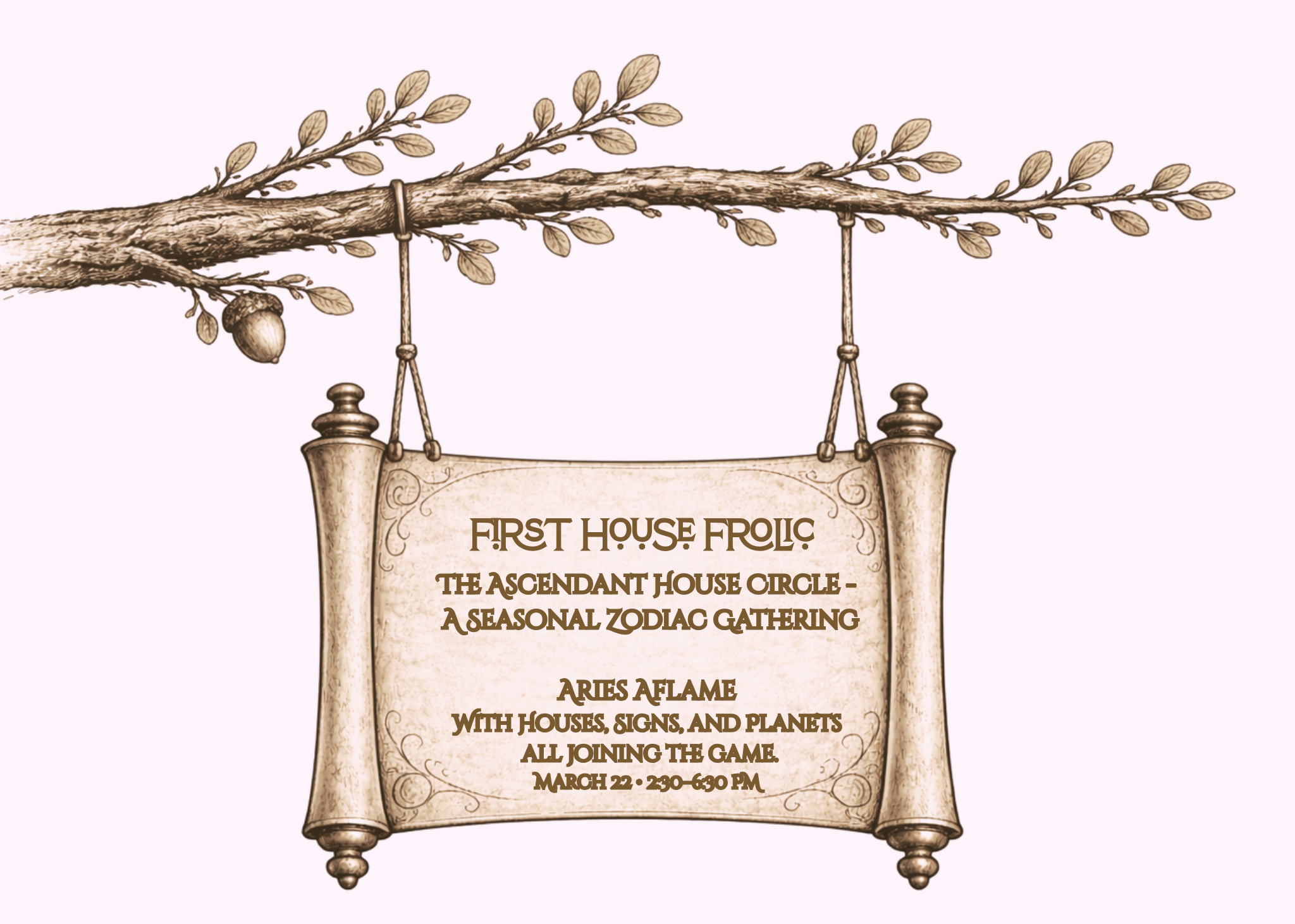 Join us March 22nd 2:30-6:30 at Wooo Hooo House for our Zodiac Gathering.